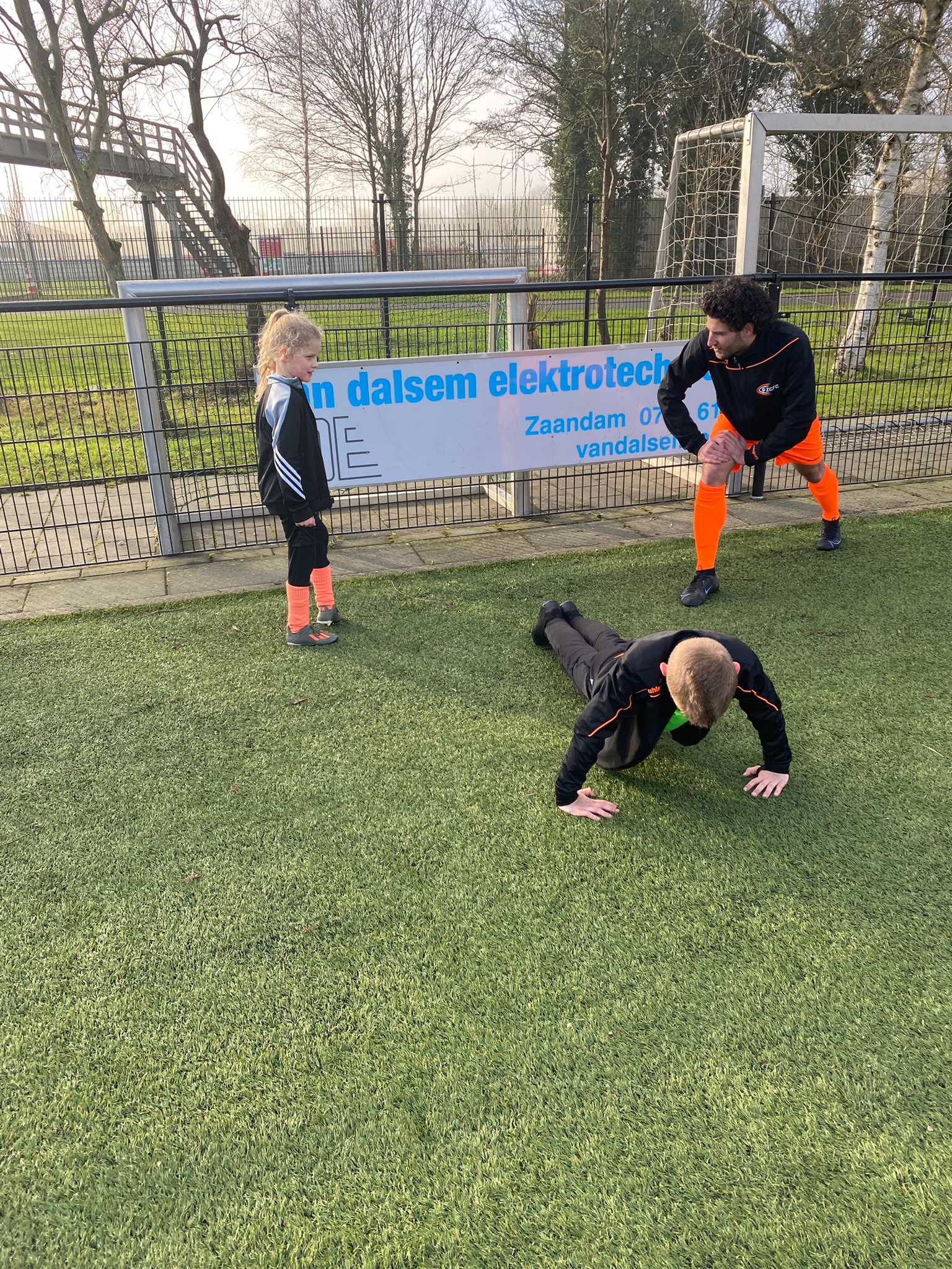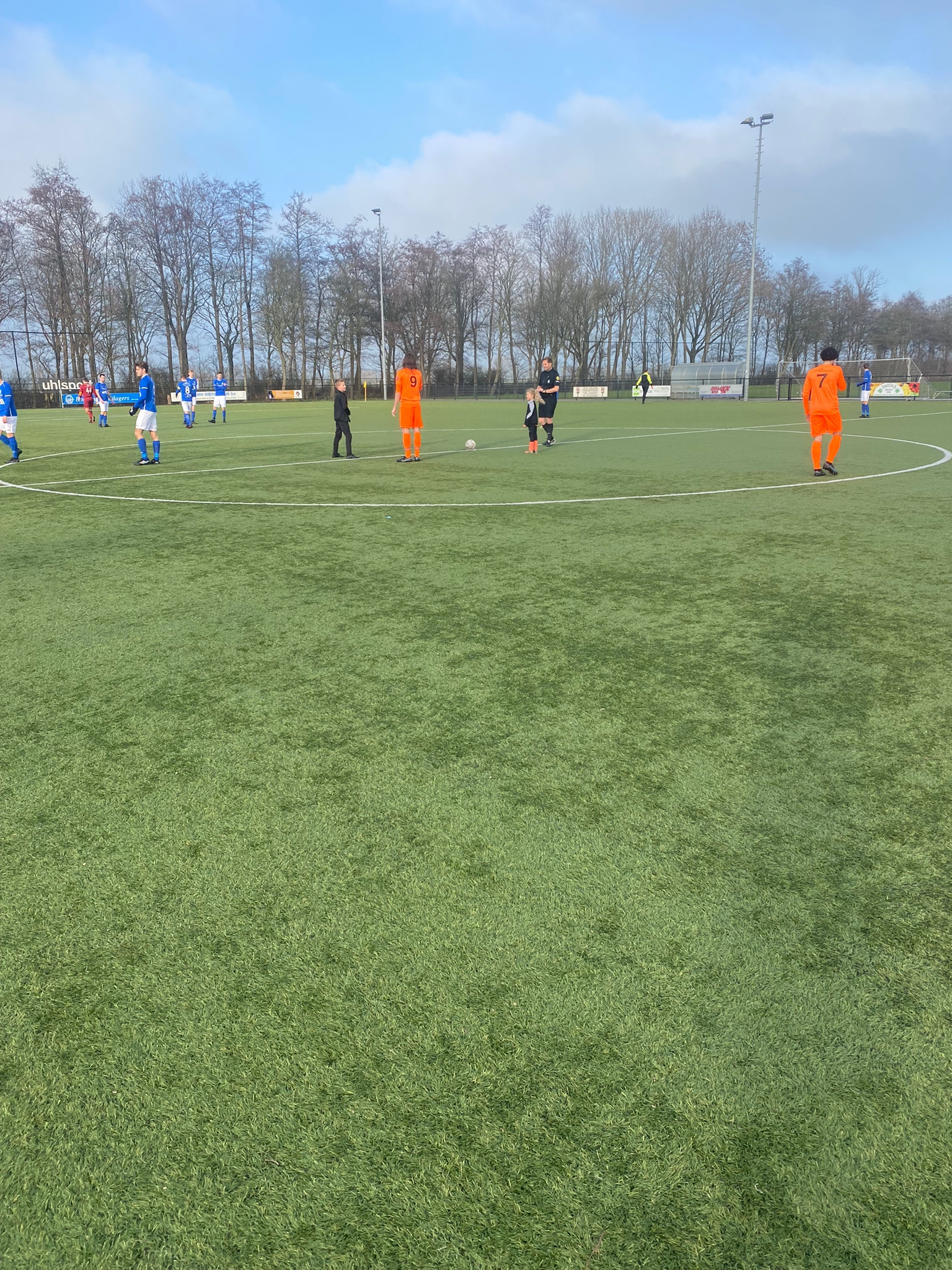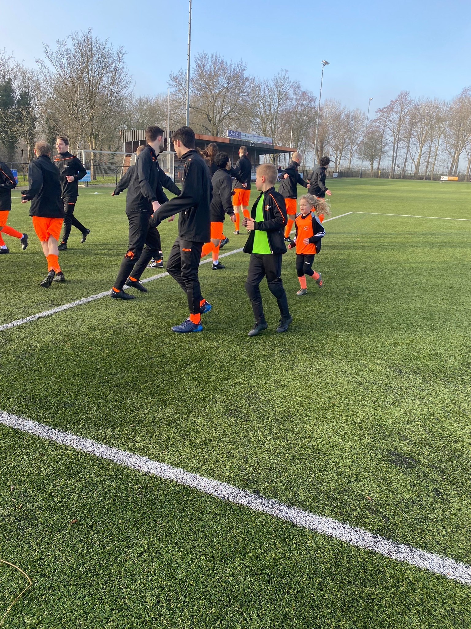 We vonden het heel leuk om mee te mogen doen met de warming-up en aan het begin van de wedstrijd de aftrap te mogen doen. Al snel maakten we een doelpunt.