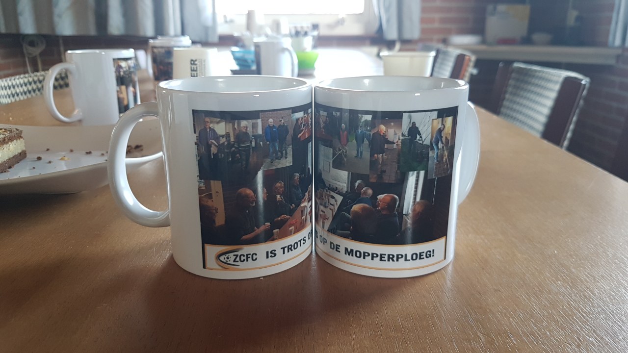 Als je op vrijdagochtend een keertje vrij bent en trek hebt in een bak koffie of thee, dan is een bezoekje aan de club zeer aan te raden. Je ziet dan diverse ZCFC-ers met een grasmaaier, bezem of theedoek rondlopen in en om de kantine. Er hangt een bijzondere en gemoedelijke sfeer die niet te beschrijven is, die moet je echt voelen. Als je rondkijkt zie je een groep van harde werkers op leeftijd met verschillende achtergronden die op deze ochtend samen hun ZCFC liefde tonen door met elkaar te klussen, te lachen en te genieten maar waar ook serieuze gesprekken gevoerd kunnen worden. Een groep helden die elke ZCFC-er trots maakt om onderdeel te zijn van onze mooie club. En als kleine blijk van waardering hebben ze nu de beschikking over hun eigen koffie’mopperploeg’mokken, een collector’s item waar ze hopelijk nog jaren gebruik van kunnen maken. En een foto zegt vaak meer dan 1000 woorden, maar de tekst op de mok is in dit geval misschien ook wel duidelijk :-).